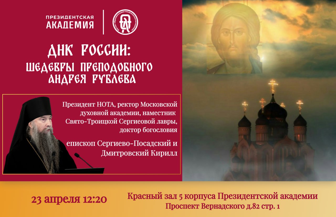 23 апреля в 12:20 в Президентской академии (РАНХиГС) состоится открытая лекция на тему: «ДНК России: шедевры преподобного Андрея Рублева».