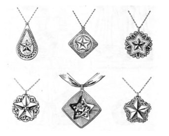 Творцы новой обрядности, видимо, вспомнили и «звездины» 1920‑х гг. Во всяком случае, для проведения обряда торжественной регистрации новорожденного был рекомендован новый символ — именная звездочка или пятиугольный памятный знак (рис. 4). «Поскольку их прообраз — пятиконечная звезда, именная звездочка или памятный знак будут напоминать гражданину о его принадлежности к первому в мире государству рабочих и крестьян, об утверждении интернациональной братской дружбы трудящихся всех пяти континентов Земли»[21]. Звездочку носят на шее — на цепочке или на ленточке. Исполнитель обращается к младенцу: «Пусть именная звездочка озарит маленькому (имя в уменьшительной форме) жизненный путь. Как светит всем людям на земле Красная звезда — символ нашей Родины, олицетворяющий братство, правду, свободу, мир и счастье»[22].