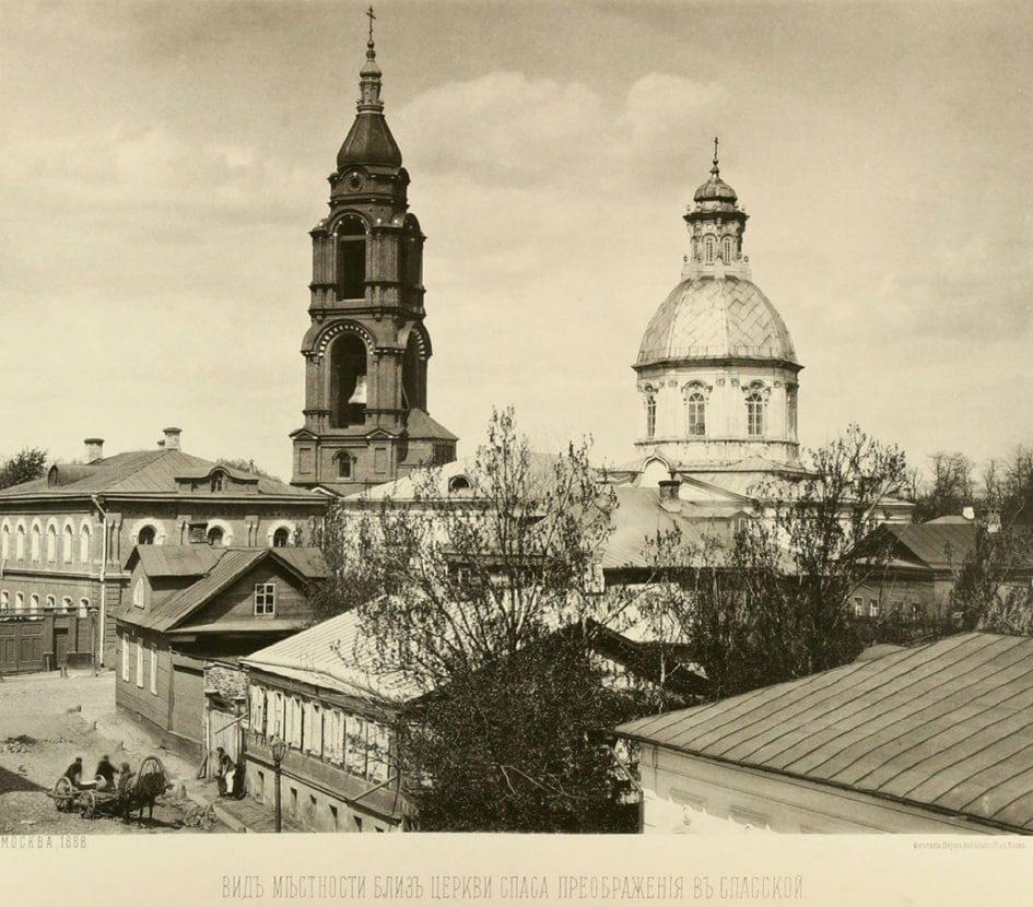 Вид местности близ церкви Спаса Преображения в Спасской. Москва, 1888 // Москва. Виды некоторых городских местностей, храмов и примечательных зданий, и сооружений. Приложение 2 / под ред. Н. А. Найденова. Москва: Типолит. Т-ва Кушнерев и К°, 1891. 46 л.