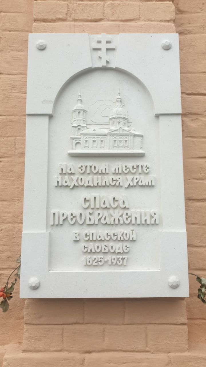 Илл. 16. Памятная доска о храме Спаса Преображения в Спасской слободе