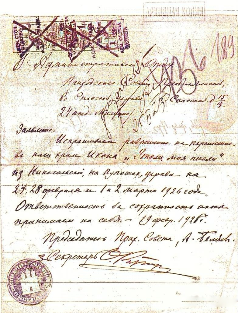 ЦГА г. Москвы, ОХД после 1917 г. Ф. 1215. Оп. 4. Д. 36.