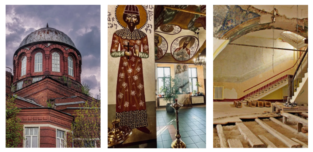 Храм Великомученика Георгия Победоносца в Грузинах был основан более 300 лет назад грузинской общиной во главе с царевичем Георгием Вахтанговичем. Пережив расцвет, он был закрыт и разорён в эпоху советского богоборчества, а его здания переданы техникуму. Возрождение началось в 1993 году, когда древнейшую часть храма вернули верующим. Полностью здание было освобождено лишь в 2015 году.