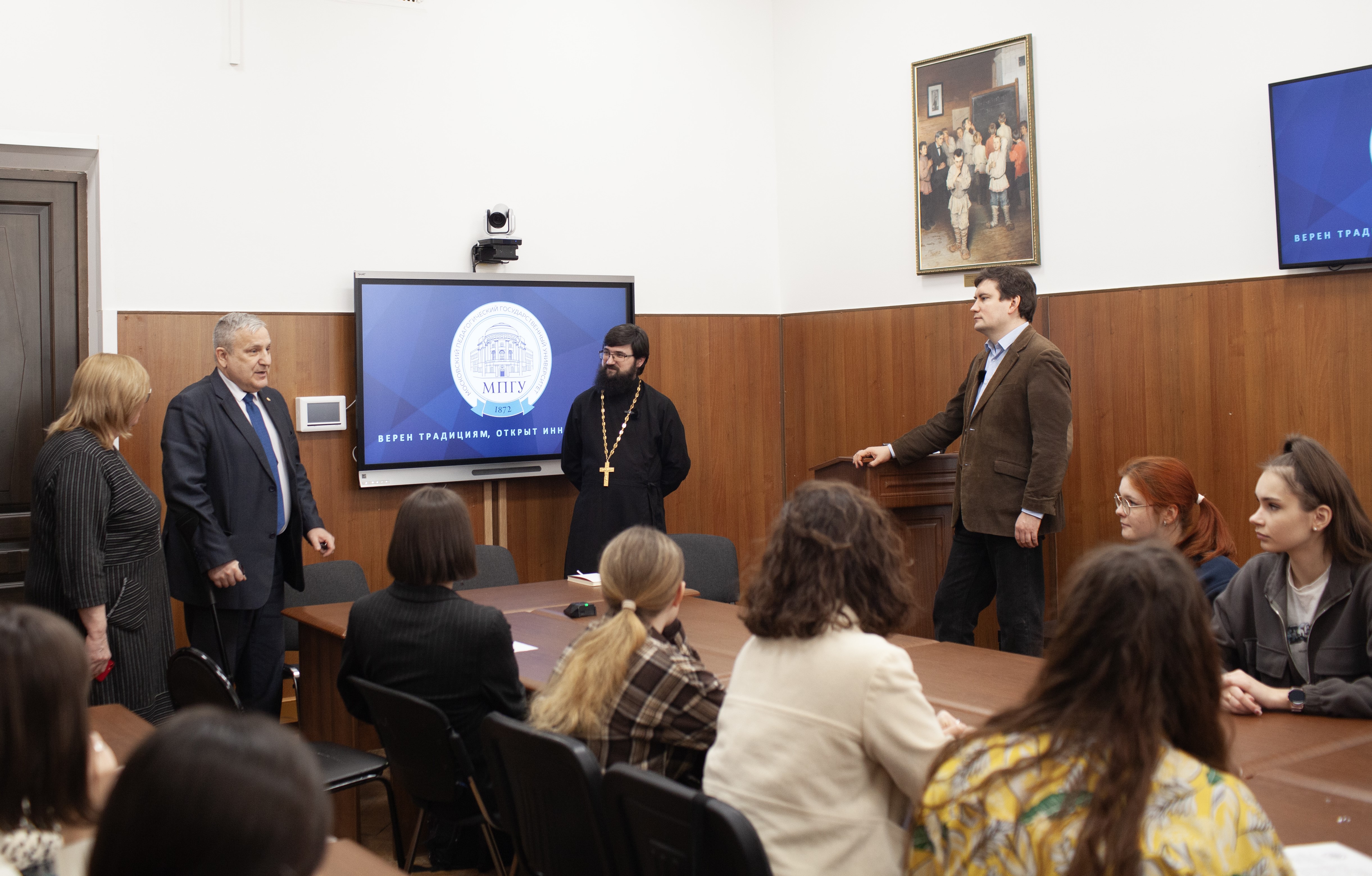 >Встреча завершилась обсуждением и вопросами от участников. Директор Института филологии МПГУ Елена Геннадьевна Чернышева выразила надежду на дальнейшее сотрудничество, отметив важность глубокого понимания христианской культуры для любого педагога.
