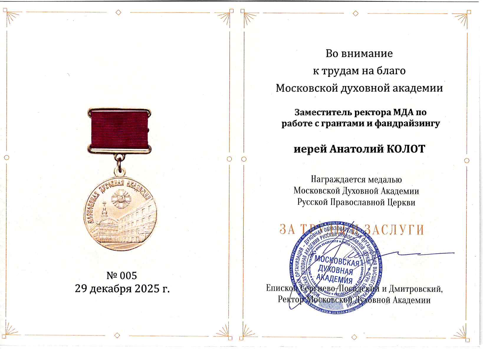 Иерей Анатолий Колот — выпускник Московской духовной семинарии (2008) и академии (2014), а также исторического факультета МГГУ имени М. А. Шолохова (2009). Является клириком храма Рождества Христова в Митино. Женат, отец семерых детей.